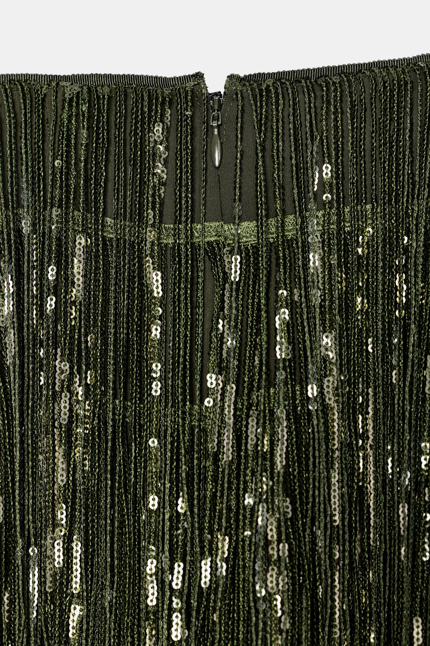 Party Crasher Layered Sequined Tassels High Rise Back Zipper Midi Skirt